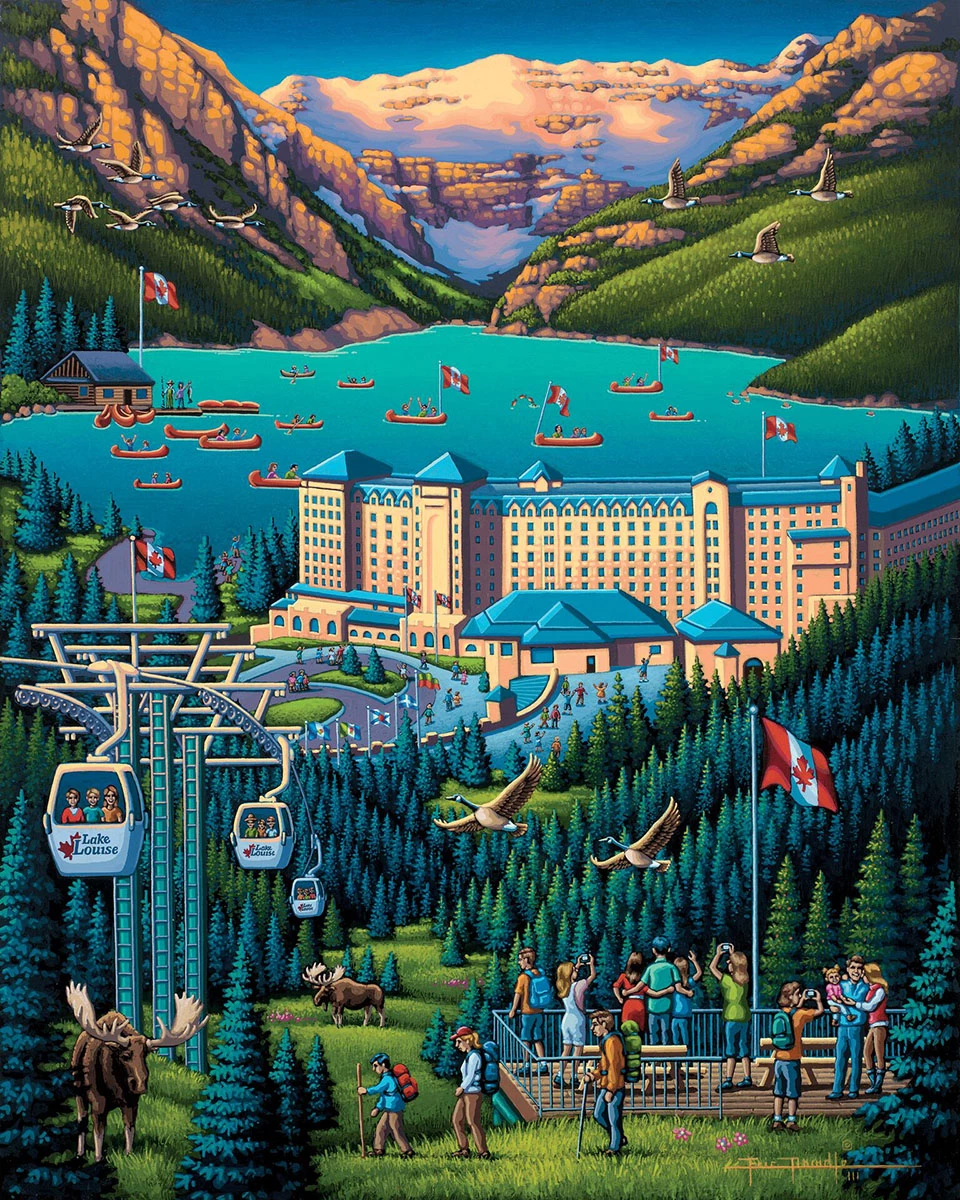 Lake Louise is a beautiful, instant classic by Eric Dowdle, featuring a woodland area in the foreground of a stunning blue lake! Eric’s classic Americana style is nothing shy of iconic, as it has become wildly popular throughout the puzzle industry. Perfect for Dowdle fans!