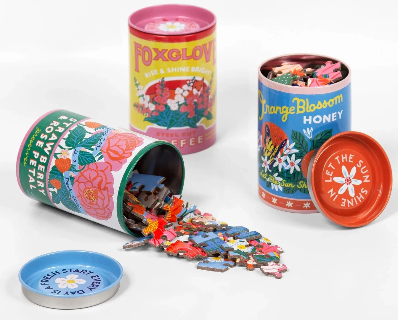 Galison’s shaped puzzle set features three whimsical floral illustrations by Emily Taylor. Use the tins as decor when each puzzle is done!