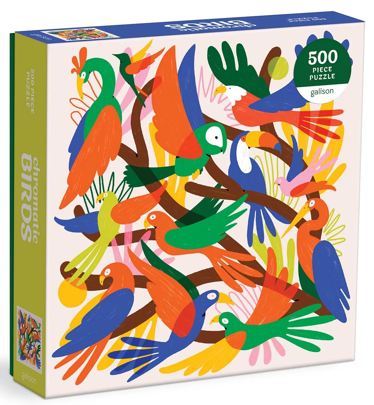 The Chromatic Birds 500 Piece Puzzle from Galison features a colorful modern illustration of tropical birds from Brazilian artist, Lucas Wakamatsu. Galison puzzles are packaged in matte-finish sturdy boxes, perfect for gifting, reuse, and storage.