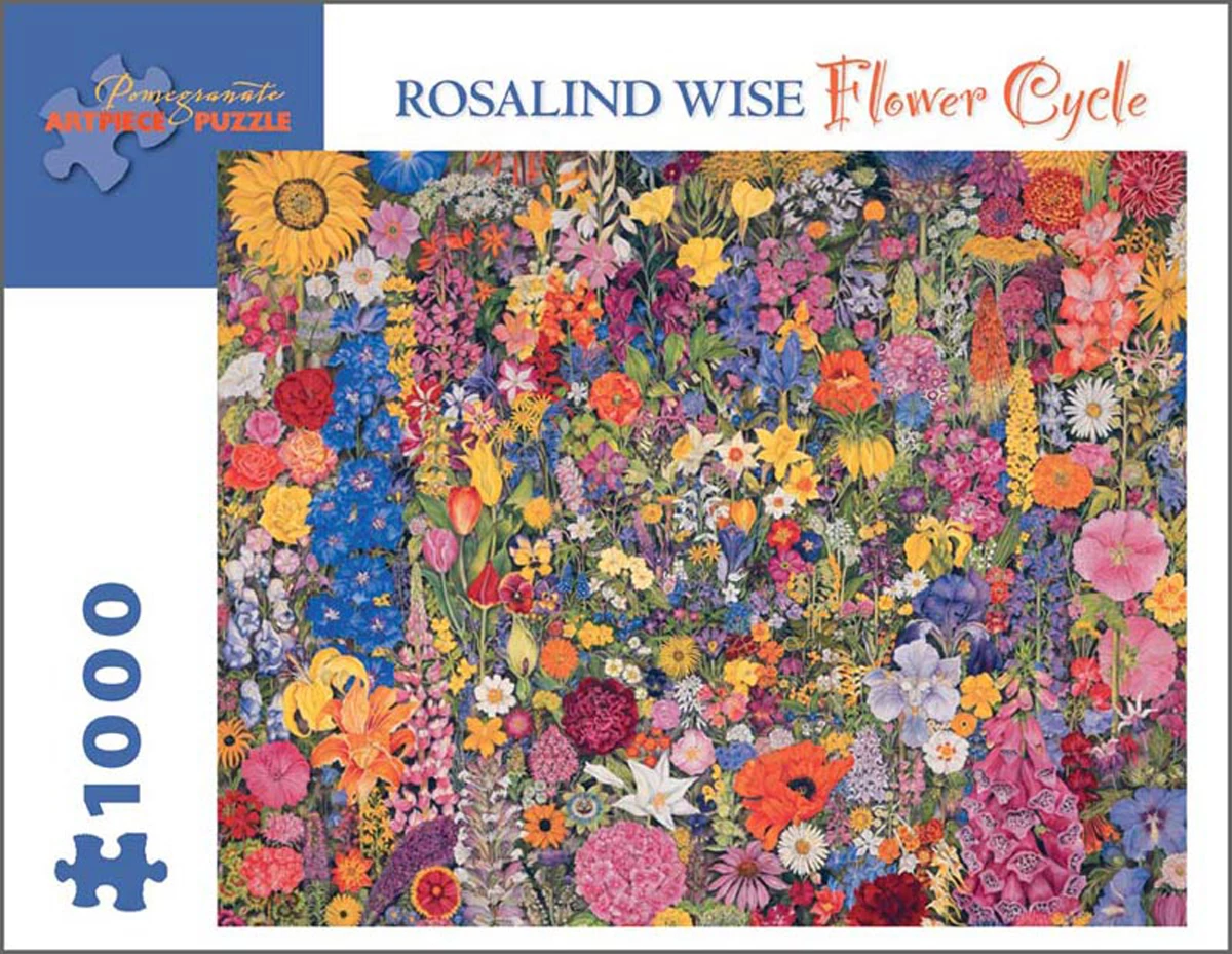 Flower Cycle by Rosalind Wise (British, b. 1949) is a 1000 piece jigsaw puzzle from Pomegranate. Puzzle measures 29″ x 20″ when complete. Released July 2012.