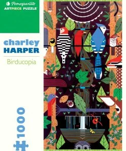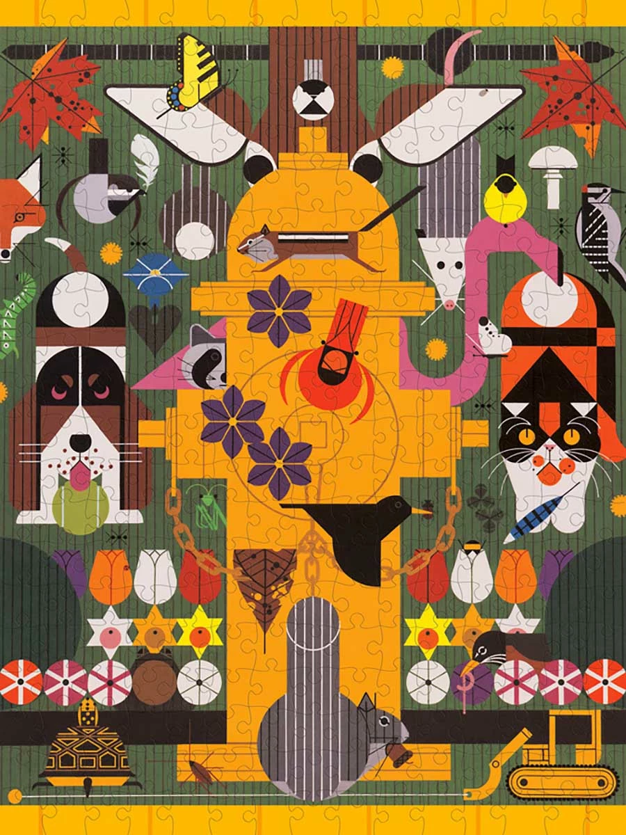 Whether his subject was cats, dogs, raccoons, blackbirds, turtles, or the wonderful world of bugs, American artist Charley Harper (1922 – 2007) made paintings filled with color, motion, and fun. His whimsical paintings have delighted art and animal lovers for more than sixty years. Harper developed his unique style while a student at the Art Academy of Cincinnati and the Art Students League in New York City. His distinctive use of simple geometric shapes, patterns, and vivid colors—a style he defined as “minimal realism”—succinctly captured the essence of each creature he portrayed. Biodiversity in the Burbs features a couple dozen of Harper’s whimsical, delightful creatures. Puzzle measures 18″ x 24″ when complete.